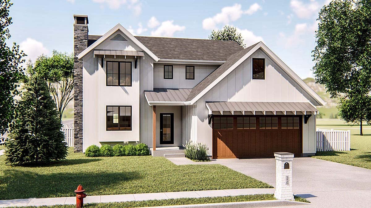 0-2000 sq ft, 2 Story, Farmhouse Plans, 3 Bedrooms, 2 Car Garage, with Slab foundation