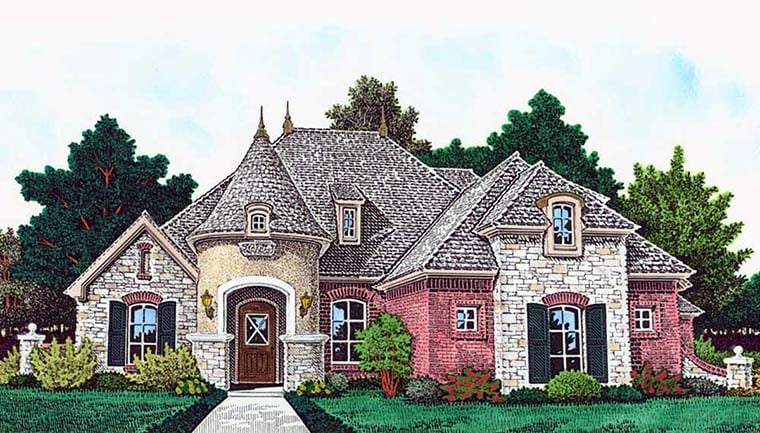 0-5000 sq ft, French Country House Plans, 4 Bedrooms, 3 Bathrooms, 3 Car Garage