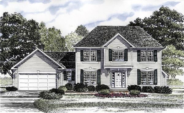 1400-2000 sq ft, 2 Story, Colonial House Plans, 3 Bedrooms, 2 Bathrooms, 2 Car Garage, Dining Room, Fireplace, with Basement foundation