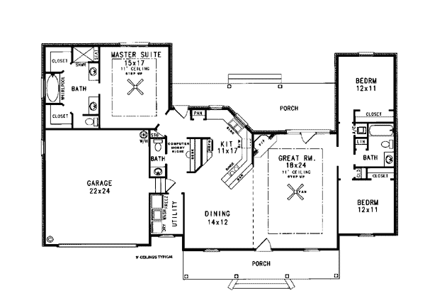1500-3200 sq ft, Cape Cod House Plans, 2 Bedrooms, 2 Bathrooms, 2 Car Garage, Fireplace, with Crawlspace foundation