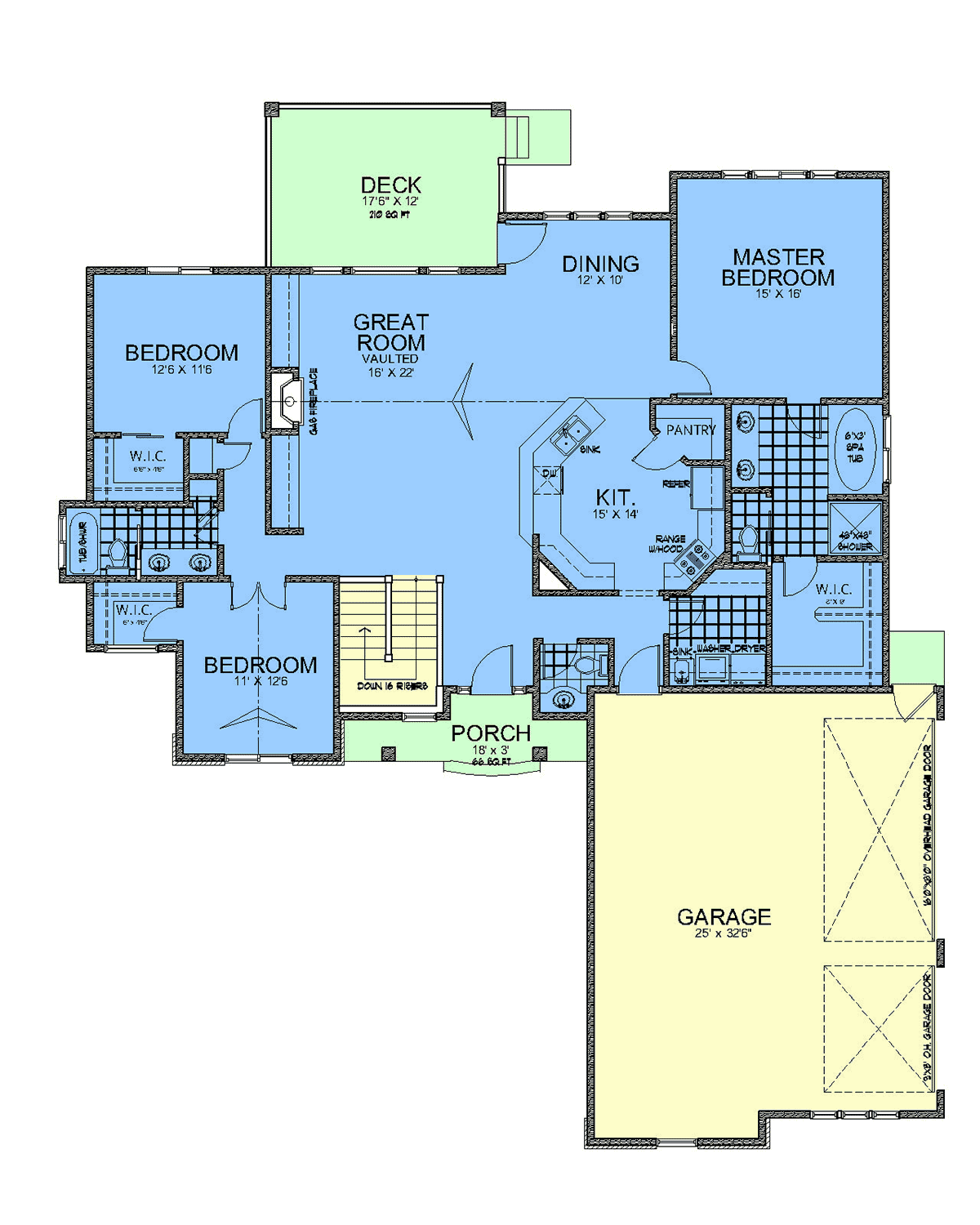 1700-2100 sq ft, 1 Story, European House Plans, 2 Bedrooms, 2 Bathrooms, 3 Car Garage