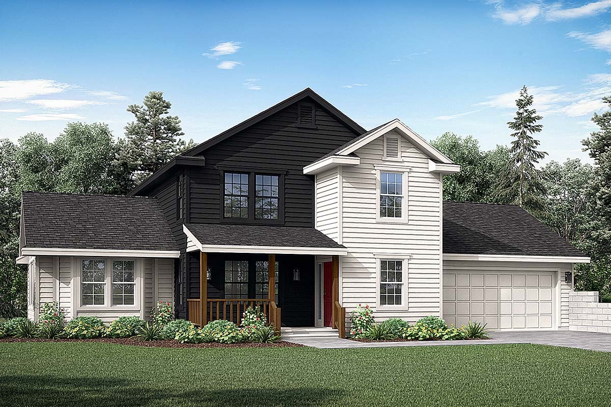 1800-2000 sq ft, 2 Story, Farmhouse Plans, 3 Bedrooms, 2 Bathrooms, 2 Car Garage, with Basement foundation