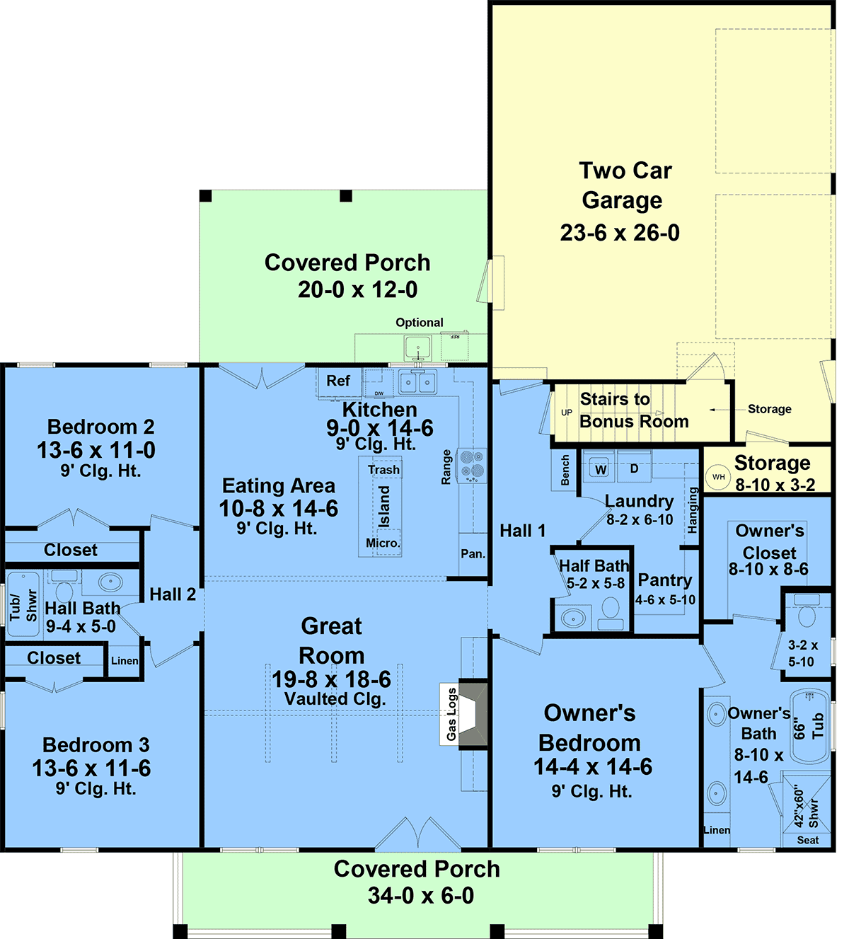 3 Bedrooms, 2 Bathrooms, Bonus Room, with Slab foundation