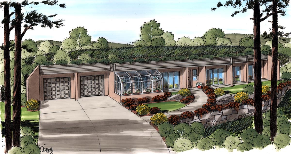 Our Earth-Sheltered Homes provide sustainable living with natural insulation and energy efficiency. Built into the landscape, these homes regulate temperature year-round while blending seamlessly with their surroundings. Interiors feature open layouts, modern kitchens, and comfortable bedrooms, proving that eco-friendly design doesn’t sacrifice style. Ideal for environmentally conscious homeowners, earth-sheltered homes deliver reduced energy costs, durability, and unique character. Explore our collection to find a plan that combines green building with everyday comfort.