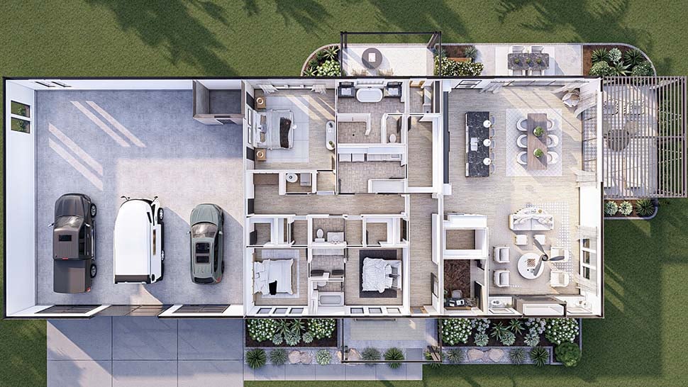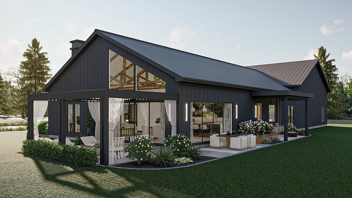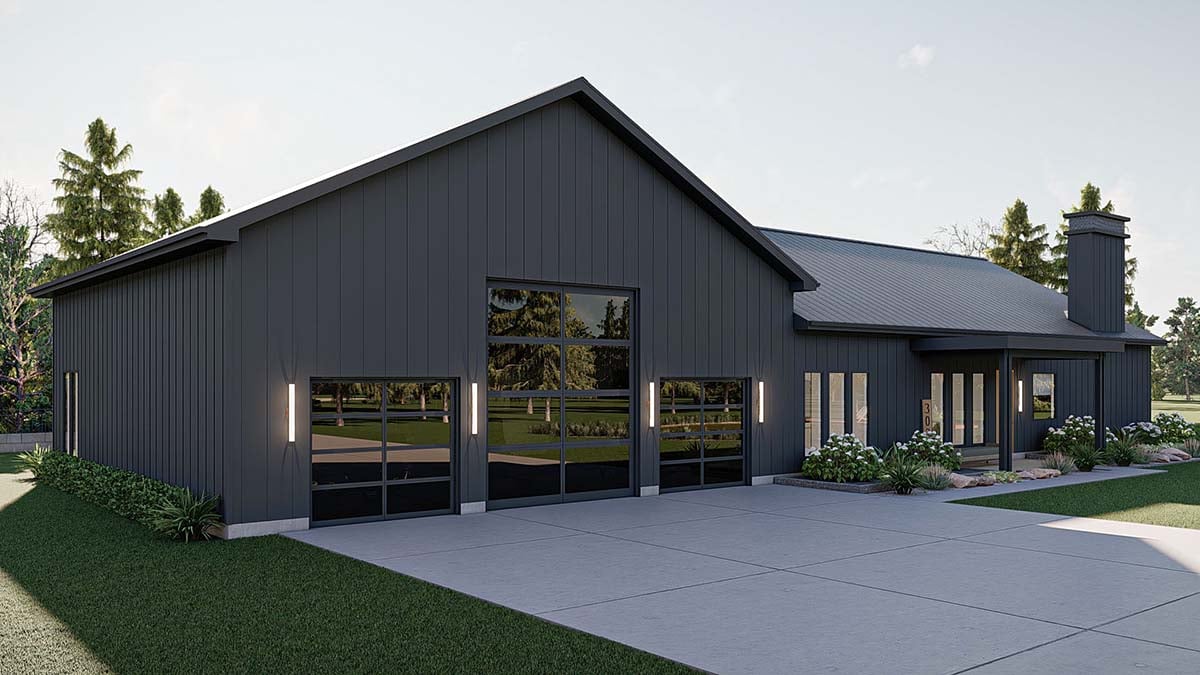 This 3-bed, 3-bath, barndominium house plan offers a harmonious blend of functionality, comfort, and aesthetic appeal. Whether you're seeking a cozy retreat or a place to host gatherings, this home effortlessly combines the rustic charm of a barn with modern amenities, ensuring an exceptional living experience for you and your loved ones.