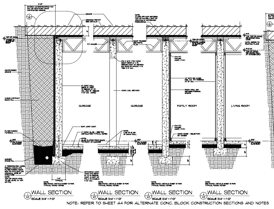 Typical Cross Section A cut-away cross-section through the entire home shows your building contractor the exact correlation of construction components at all levels of the house. It will help to clarify the load bearing points from the roof all the way down to the basement. Available for most plans.