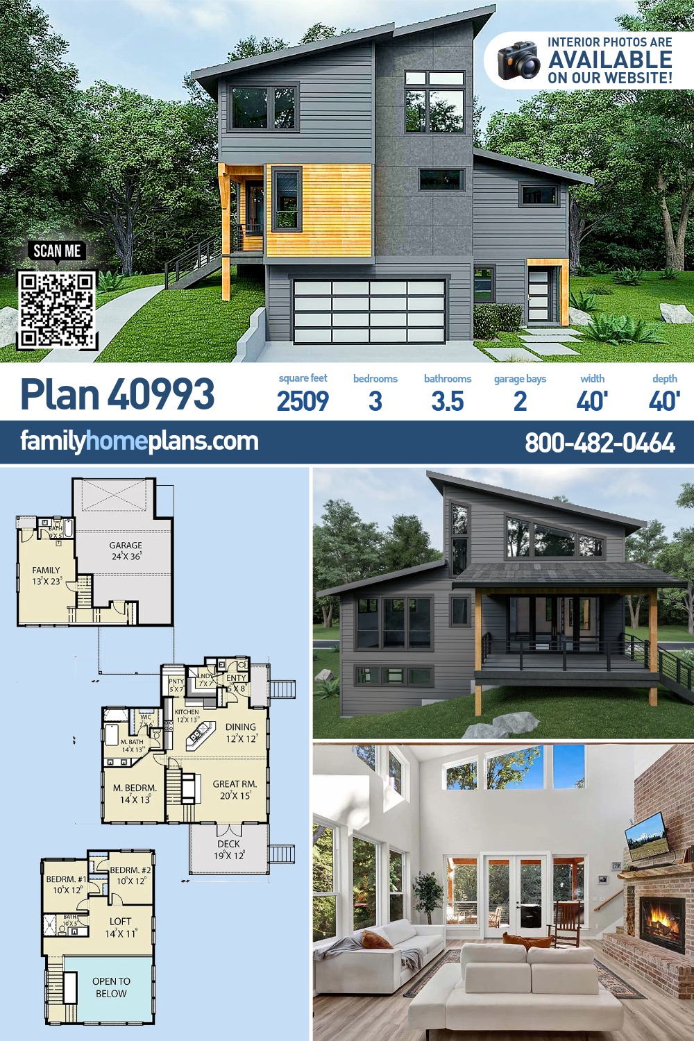 Contemporary Style House Plan 40993 with 2509 Sq Ft, 3 Bed, 4 Bath, 2 Car Garage