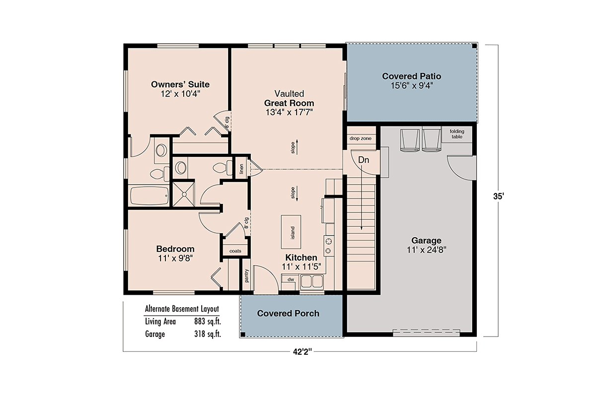 The Storage room will move over 4’ to the right to accommodate the basement stairs, with the width of the house expanded +4’ for a new 42’-2” width x 35’ depth outside house dimension.
