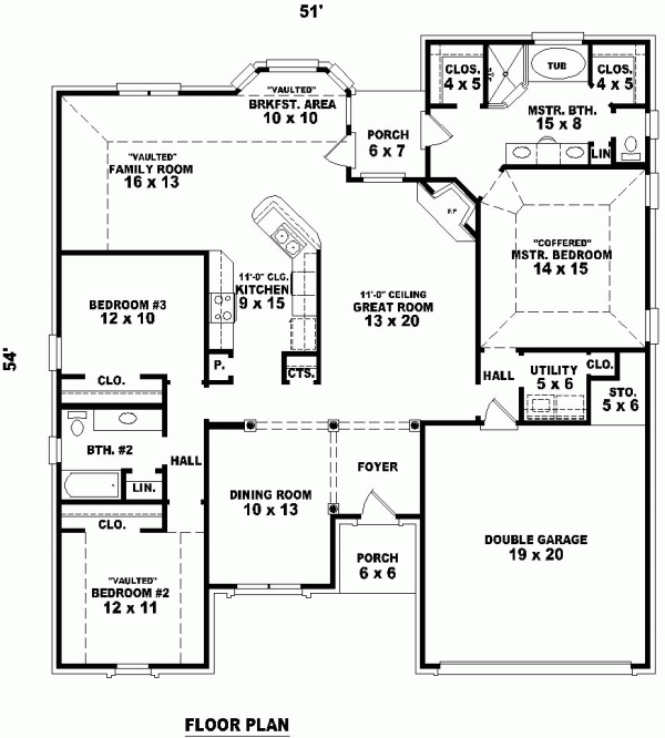 One-Story, Traditional Style House Plan 46724 with 1951 Sq Ft, 3 Bed, 2 Bath, 2 Car Garage