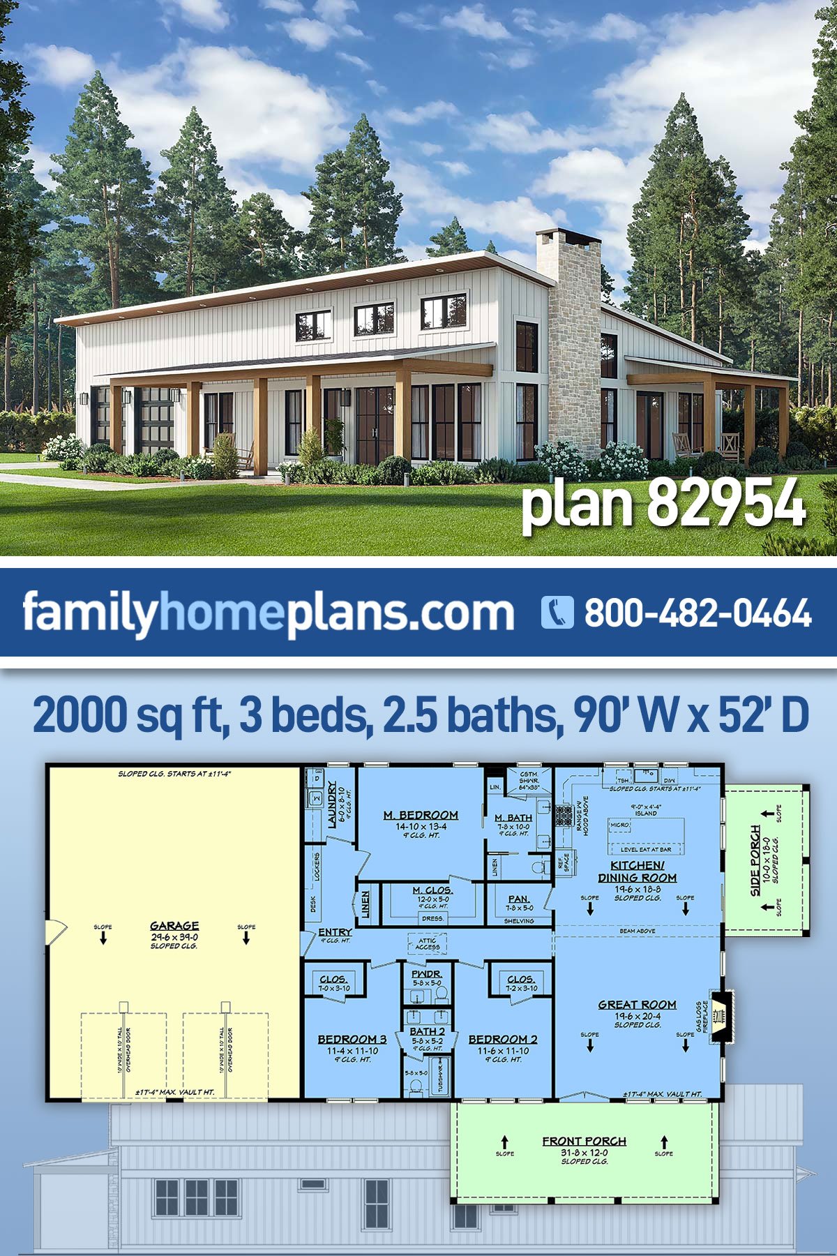 Plan 82954 | Barndominium, Contemporary, Farmhouse House with 3 Bed, 3 Bath, 2 Car