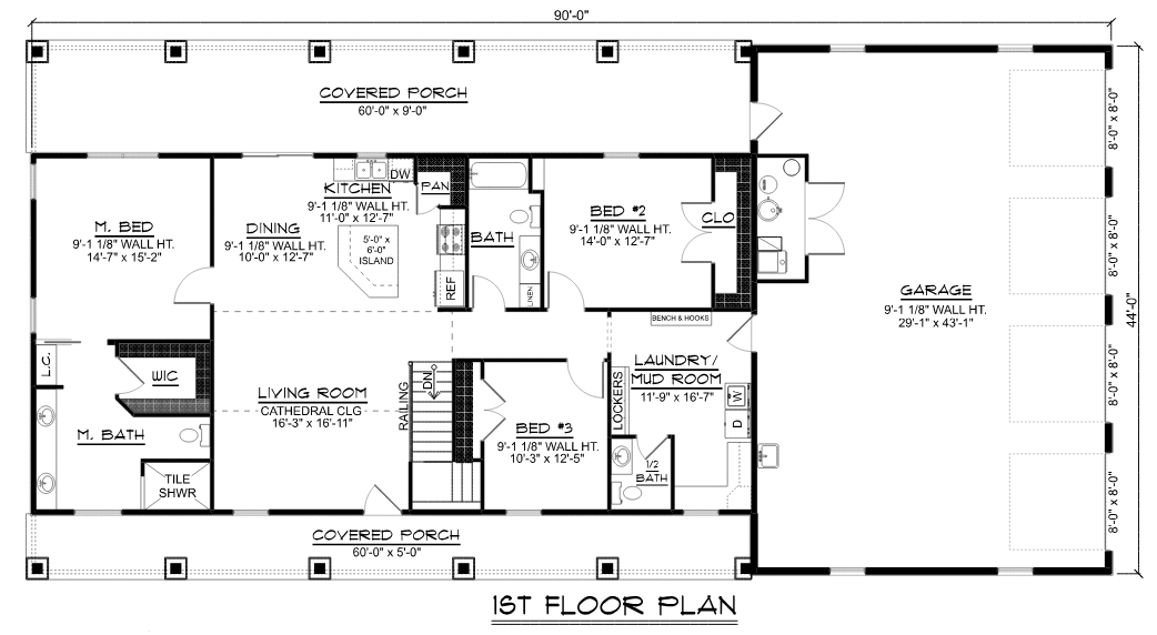Big Garage Ranch Plan 43931 combines two very popular things: Ranch Style House Plan + Huge Garage. The house itself is a total of 1,803 square feet of living space, 3 bedrooms, and 2.5 bathrooms. The attached garage and shop area measures about 29 feet wide by 43 feet deep and has a whopping 1,320 square feet! You will have enough room to park 4 vehicles, plus there is a convenient mechanical room in the rear of the garage space. Now, you can work on projects by stepping straight from the house. No need to travel through any bad weather to warm up the car.