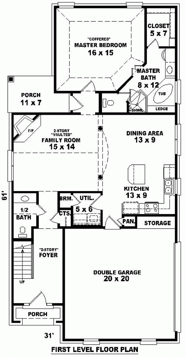 Narrow Lot, Traditional Style House Plan 46381 with 1949 Sq Ft, 3 Bed, 3 Bath, 2 Car Garage