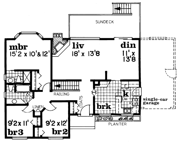 Traditional Style, 1404 Sq Ft, 3 Bed, 2 Bath, 1 Car | Plan 55197