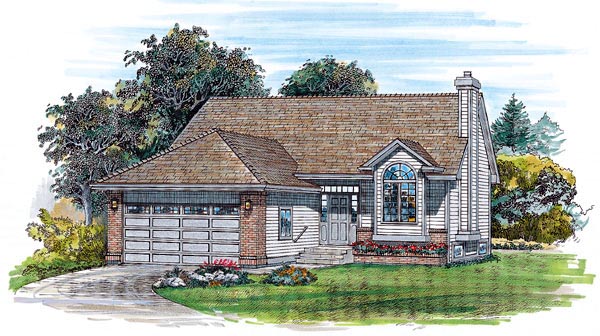 Narrow Lot, One-Story, Traditional Style House Plan 55251 with 1000 Sq Ft, 3 Bed, 1 Bath, 2 Car Garage