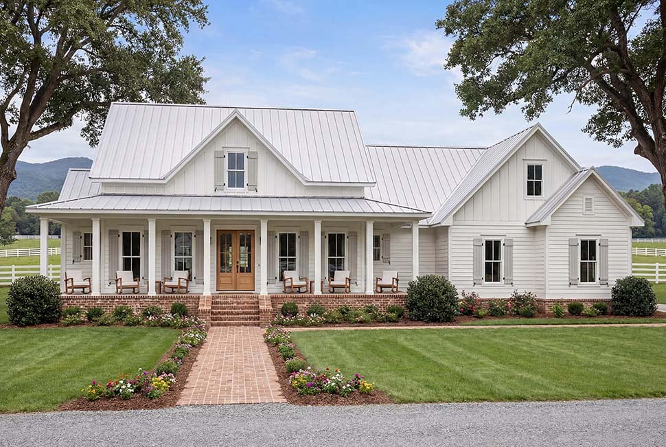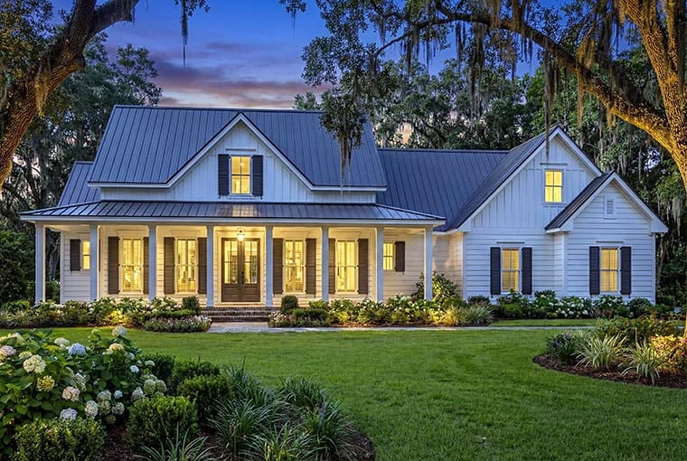 Farmhouse Plan with Large Porches and 2282 Sq Ft, 3 Bedrooms, 2.5 Baths and a 2 Car Garage