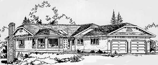 One-Story, Ranch Style House Plan 58823 with 1763 Sq Ft, 3 Bed, 2 Bath, 2 Car Garage