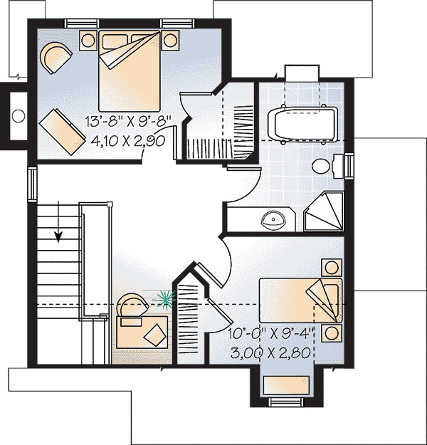 Plan 65450 | Country, Narrow Lot House with 2 Bed, 2 Bath
