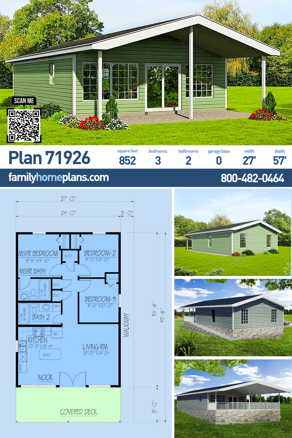 Country Ranch House Plan 71926 with 852 Sq Ft, 3 Bed, 2 Bath