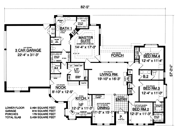 Traditional Style House Plan 77763 with 2464 Sq Ft, 4 Bed, 3 Bath, 3 Car Garage