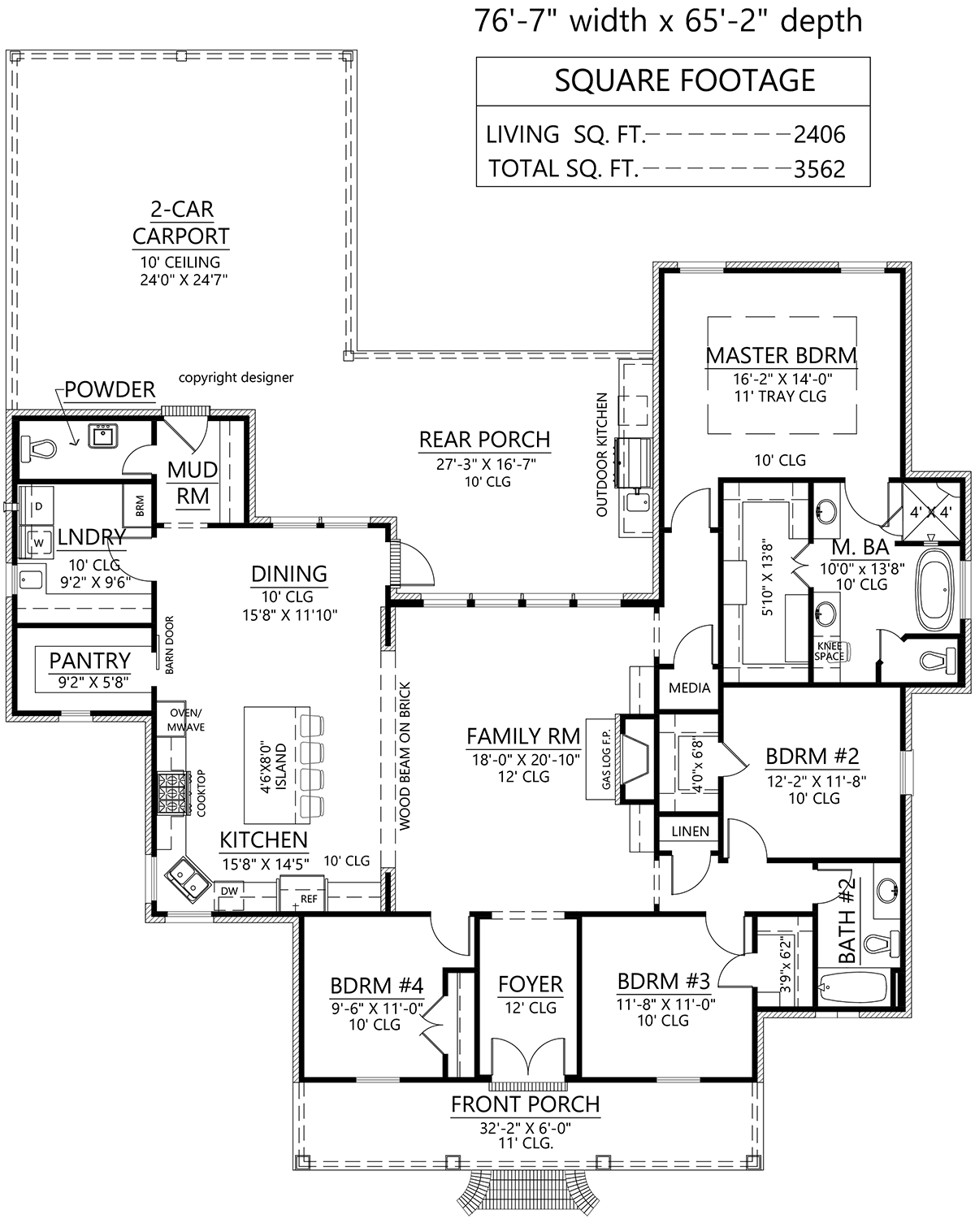 French Country Style, 2406 Sq Ft, 4 Bed, 3 Bath, 2 Car | Plan 84700