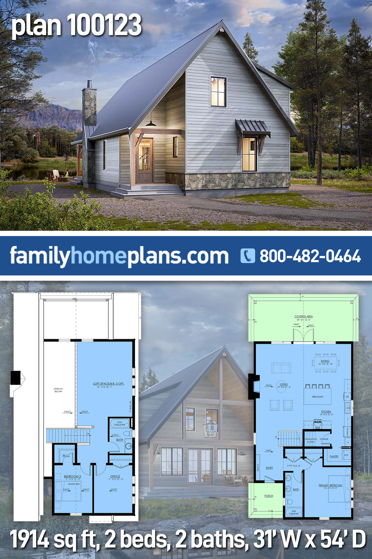 Plan 100123 | Cabin, Cottage, Country, Farmhouse House with 2 Bed, 2 Bath