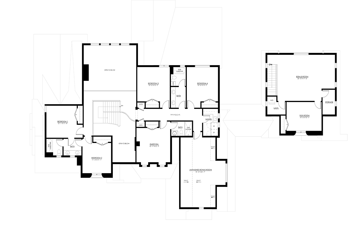 Building Sections - Overall section of the build to capture ceiling heights, drops, roof profiles, etc.