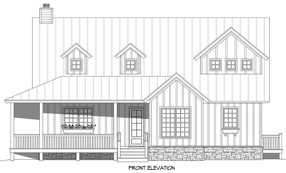 The exterior radiates timeless country charm with inviting front and rear porches, offering 782 square feet of outdoor living space ideal for relaxing evenings or entertaining guests. The farmhouse-style elevation showcases traditional lines and welcoming curb appeal, making it a standout in any neighborhood.