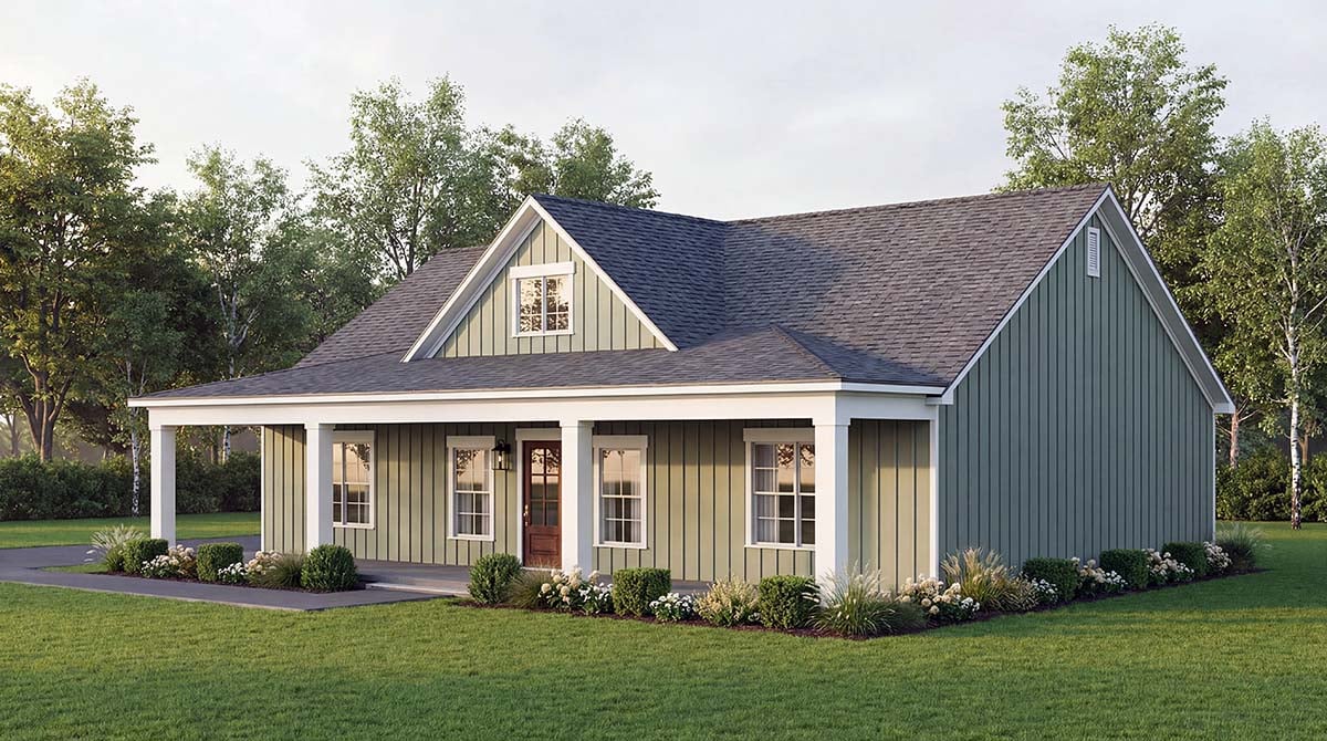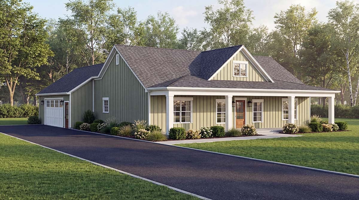 Contemporary, Country, Farmhouse, Ranch Style House Plan 100446 with 1600 Sq Ft, 3 Bed, 2 Bath, 2 Car Garage