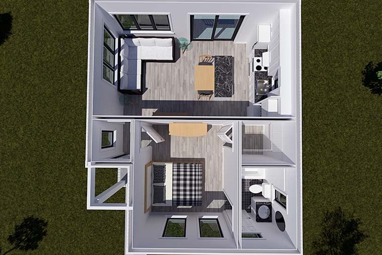 Contemporary Modern House Plan 100670 with 448 Sq Ft, 1 Bed, 1 Bath