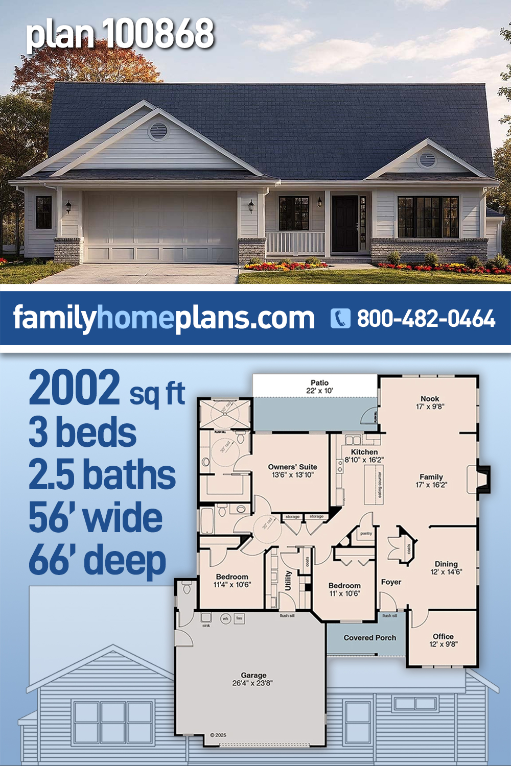 Traditional Ranch House Plan 100868 | 3 Bed 3 Bath with Office and Accessible Design