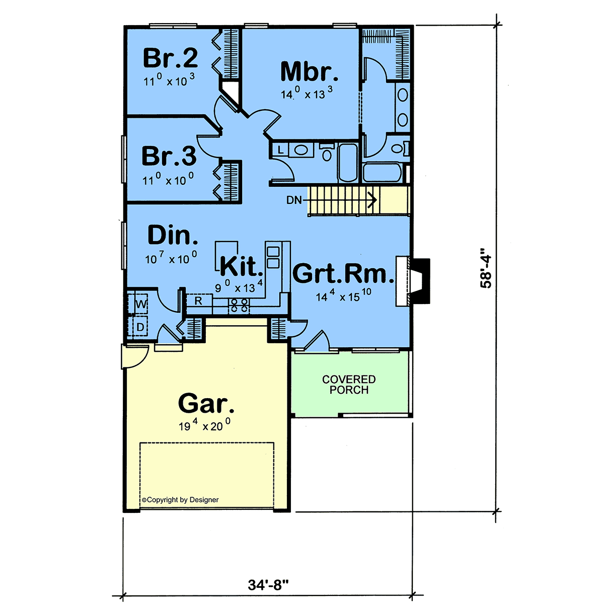 1/4" scale. Fully dimensioned from stud to stud for ease of framing. 2"x4" walls are standard. The detailed