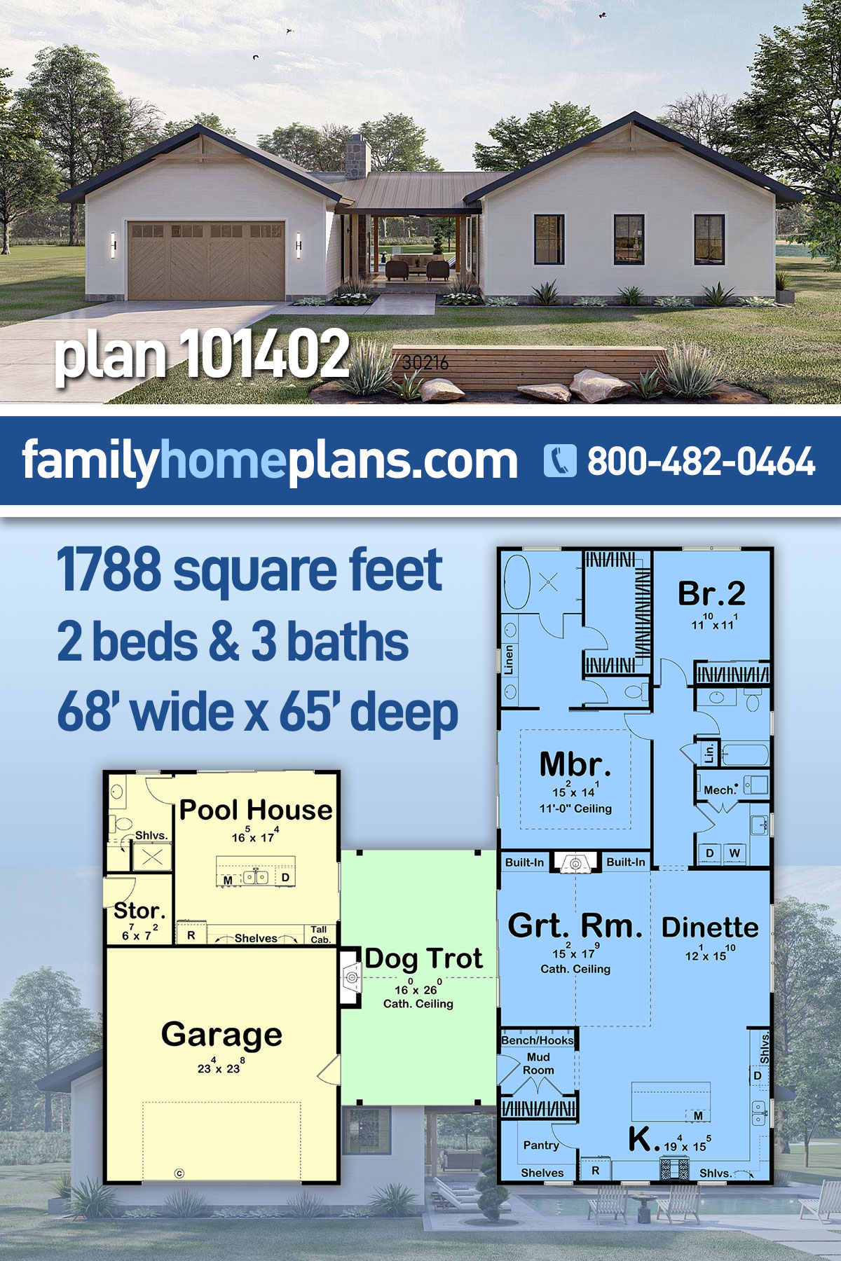Walk up to the dogtrot to be welcomed by a beautiful covered greeting area with a fireplace and choose to walk into the pool house inclusion or main living space. The main living space offers a mudroom with built-in benches, a large kitchen with a breakfast bar and walk-in pantry, and a large great room, full of windows for natural light to peer in.