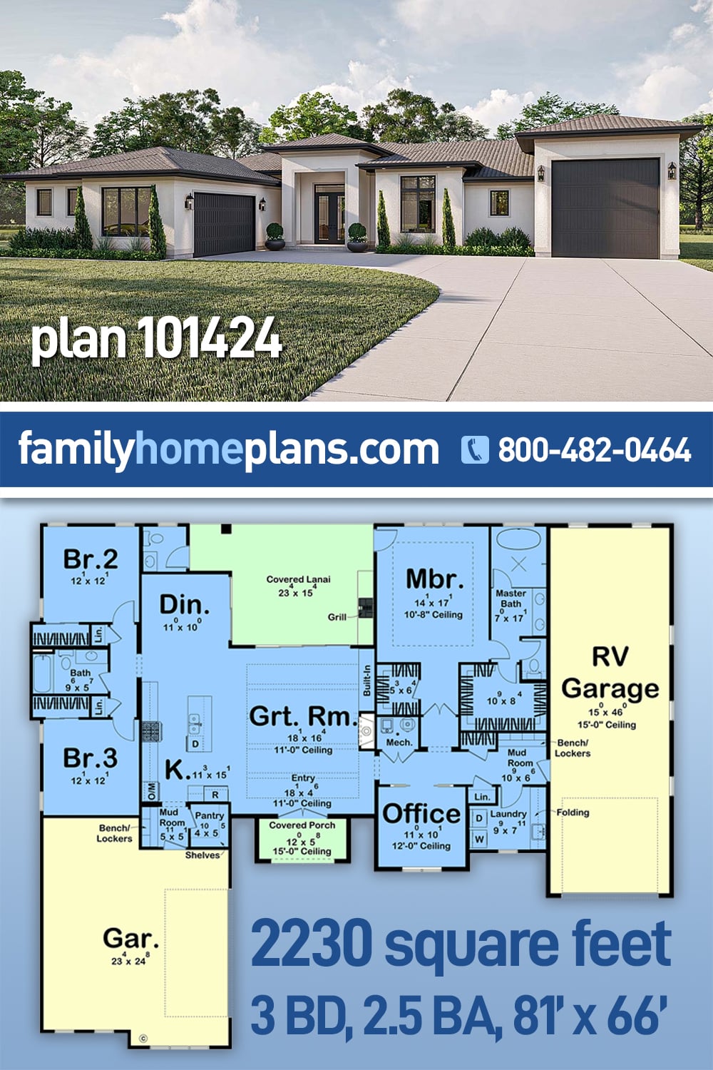 This home has a 2 car garage on the left side while the right side has an RV garage with an oversized overhead door. At the rear, there is a large covered lanai that has a built in grill and access to a bathroom.