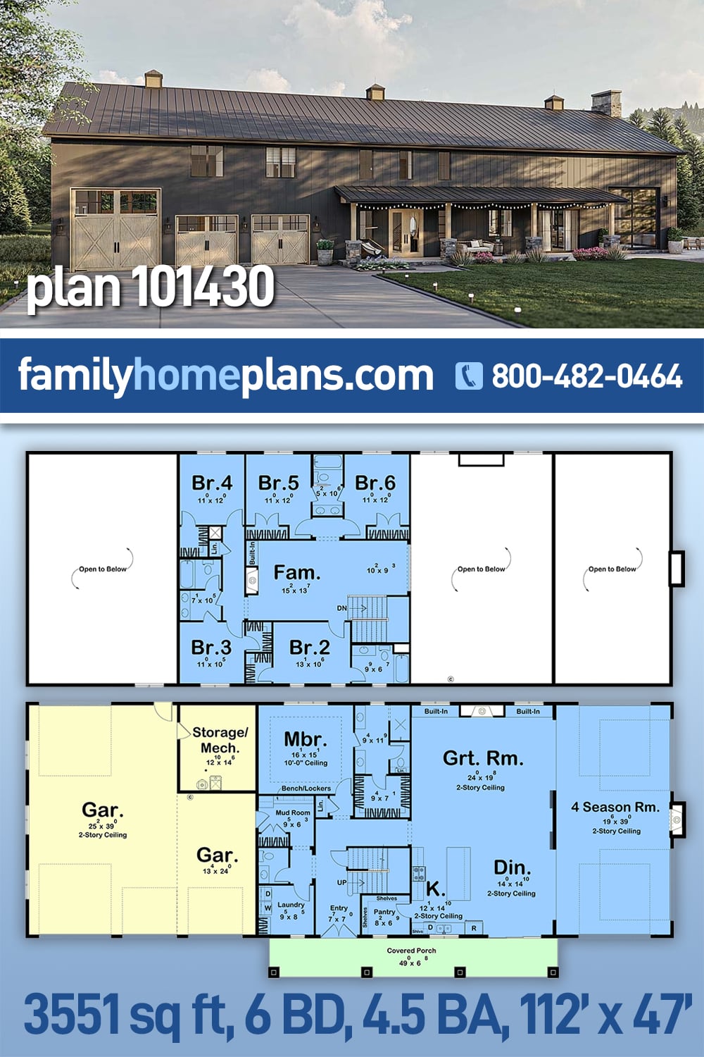 Barndominium Style House Plan 101430 – 6 Bed, 5 Bath, 4 Car Garage | 3,551 Sq Ft Rustic Luxury Home