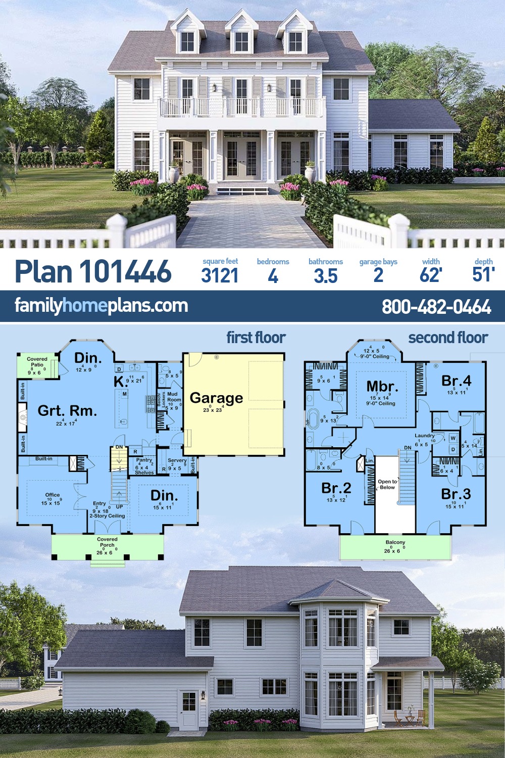 2 Story Southern Style House Plan