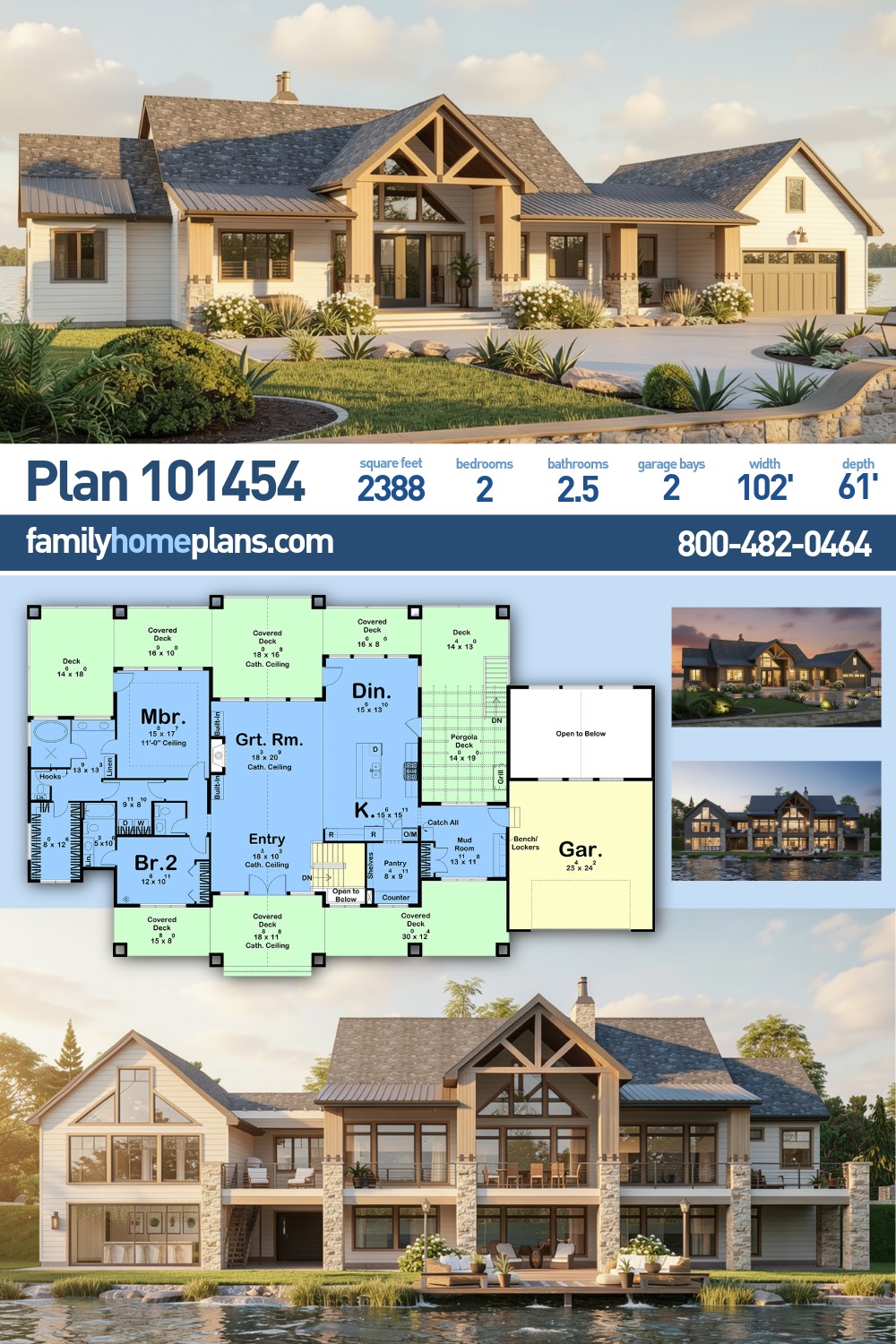 Coastal, Country Craftsman House Plan 101454 – 2 Bed, 3 Bath, 2 Car Garage | 2,388 Sq Ft