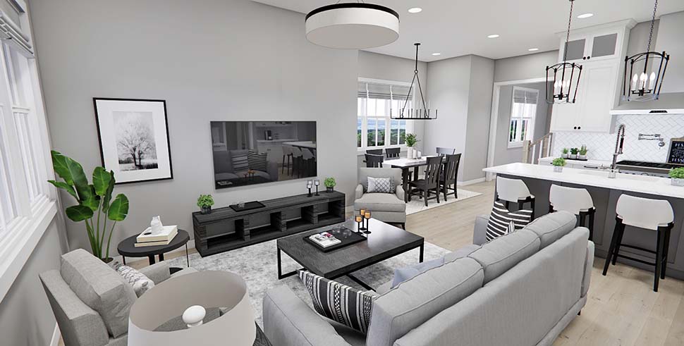 The spacious kitchen is a chef's dream, featuring a walk-in pantry, an island that seats four, and an adjacent dining area that offers the perfect setting for family meals and gatherings. From the kitchen, you're greeted by an elegant great room, complete with a sophisticated wine bar and direct access to the rear porch. This space is ideal for entertaining guests or enjoying quiet evenings with family.
