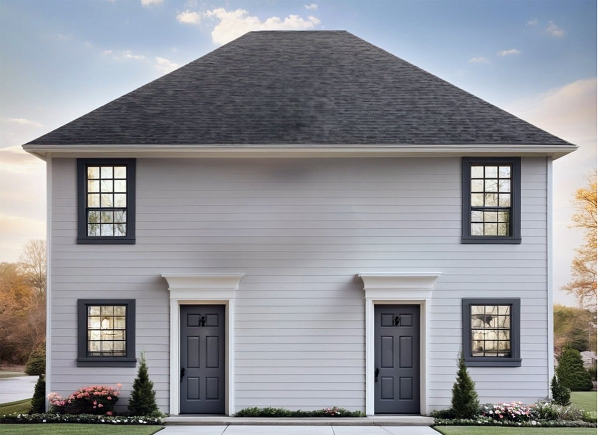Designed with an 8-foot ceiling height throughout, this plan maximizes space and natural light, making it feel open and inviting. Ideal for rental investment or extended family living, this duplex combines affordability with style and practicality. The attractive exterior, complete with symmetrical front entries and elegant trim, ensures lasting curb appeal. This thoughtful design provides the perfect balance of comfort, functionality, and timeless charm.