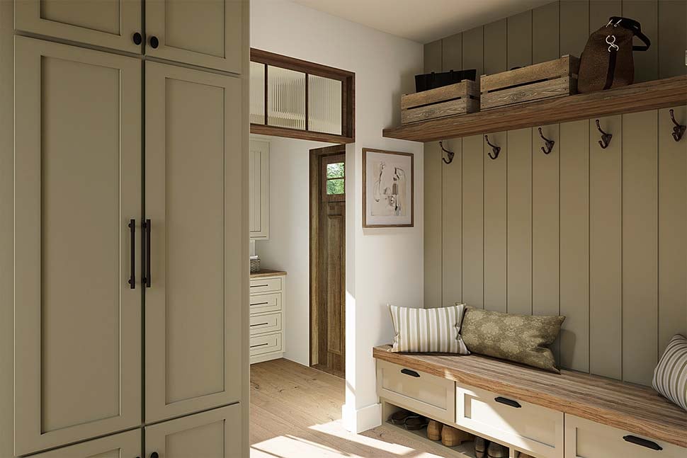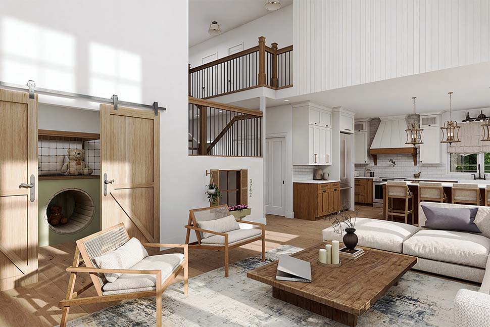 This plan is designed with a floating slab foundation, with other foundation options available to adapt to your lot and lifestyle. Bright, welcoming, and designed with everyday comfort in mind, this elegant Farmhouse home plan delivers the perfect blend of family living and timeless charm.