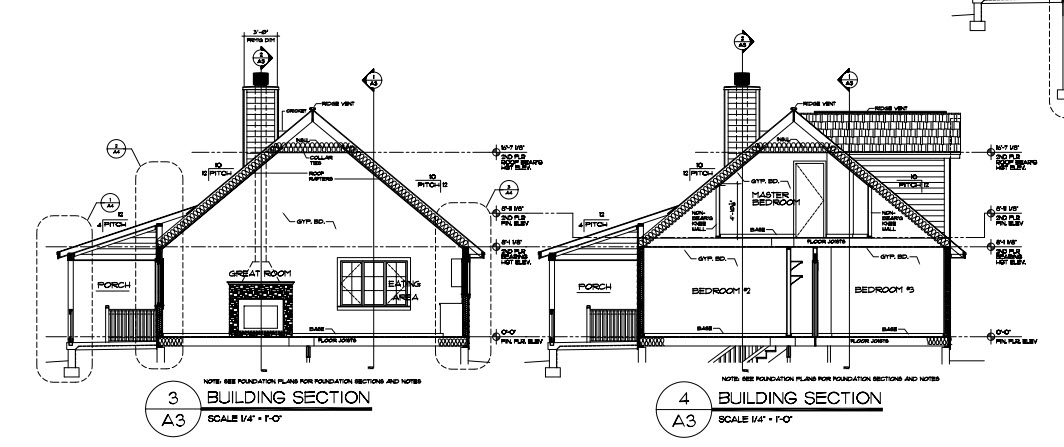 Typical Cross Section A cut-away cross-section through the entire home shows your building contractor the exact correlation of construction components at all levels of the house. It will help to clarify the load bearing points from the roof all the way down to the basement. Available for most plans.