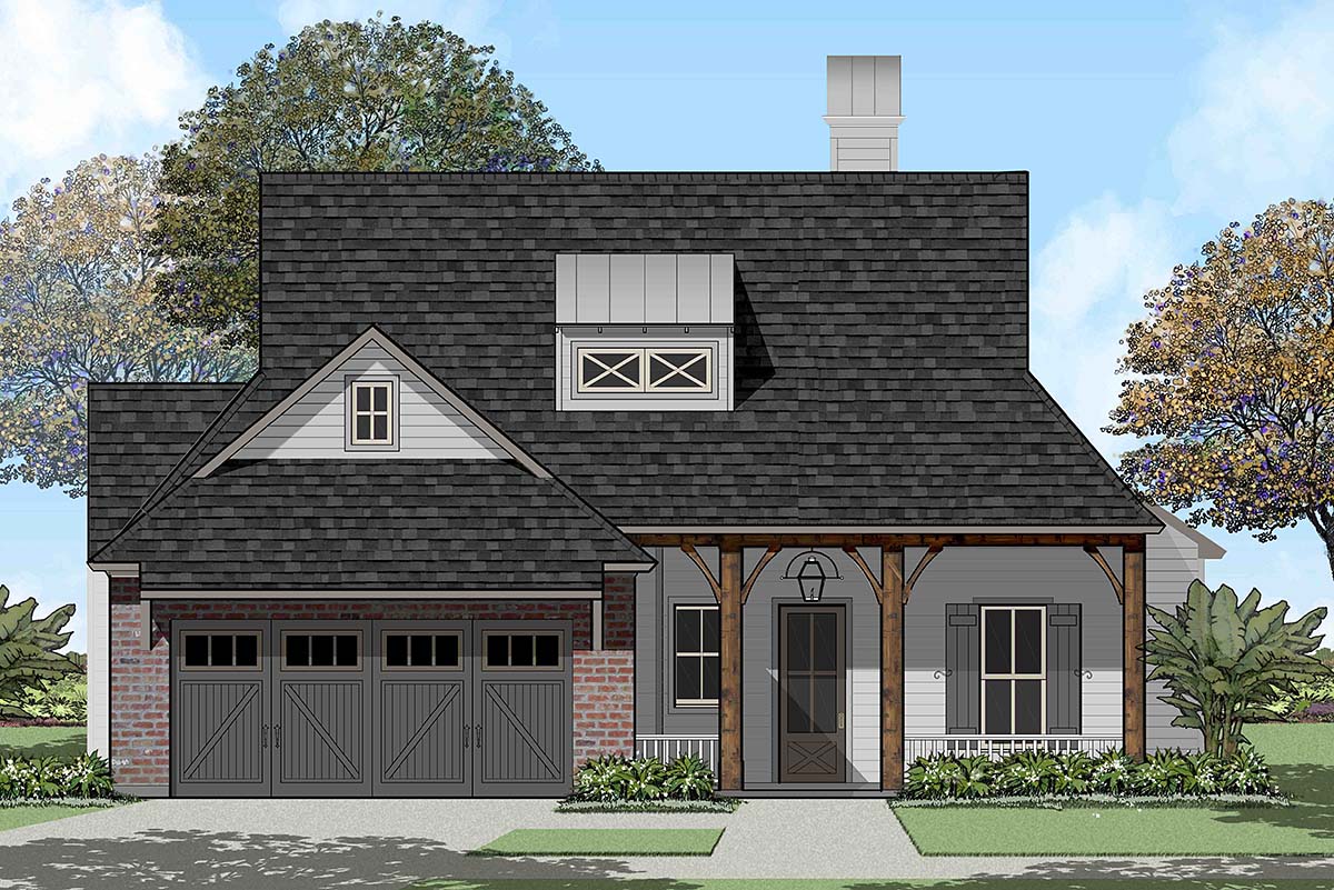 Country, French Country, Southern Style House Plan 40324 with 1823 Sq Ft, 4 Bed, 2 Bath, 2 Car Garage