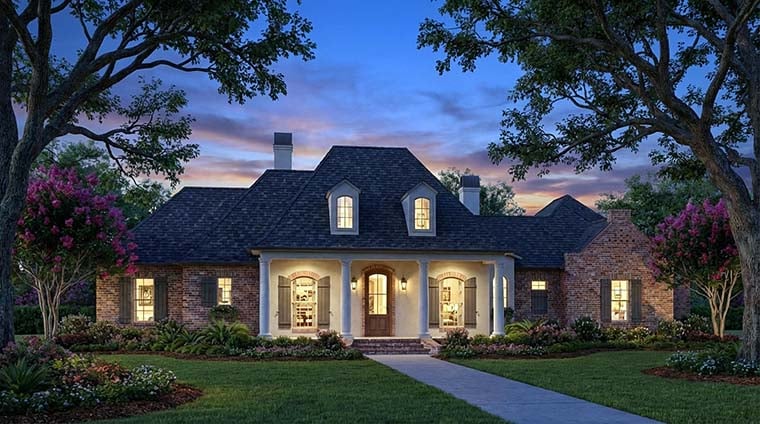 Acadian, Colonial, French Country, Southern Style House Plan 40388 with 2838 Sq Ft, 4 Bed, 4 Bath, 3 Car Garage