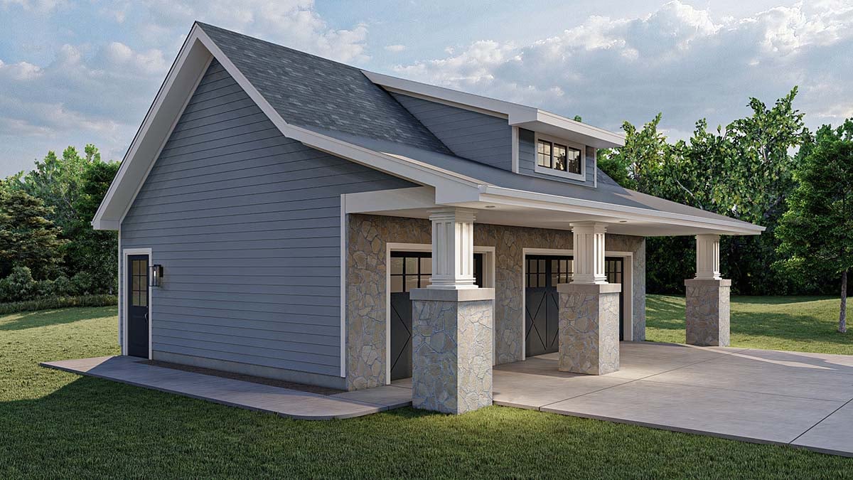 Craftsman, Traditional Style Garage Plan 41140 with 3 Car Garage