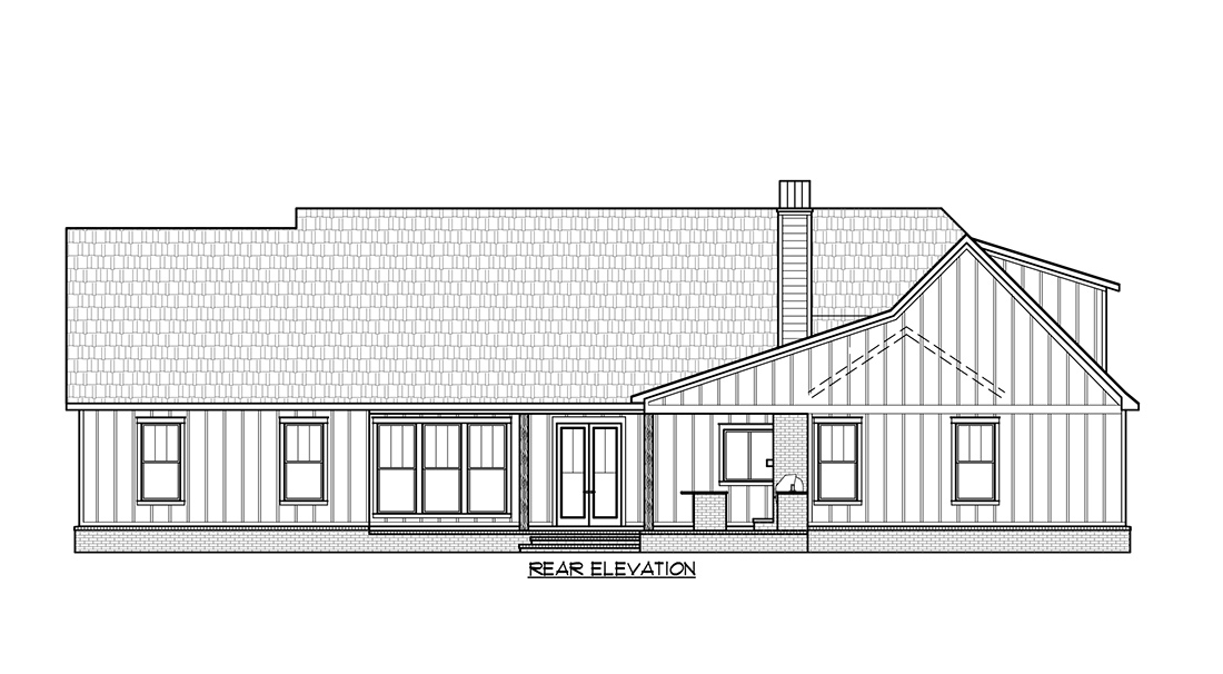 In the rear of Farmhouse Plan 41436, we find the covered porch with outdoor kitchen. Homeowners love this large porch because children can play here. An outdoor dining table will fit, not to mention the biggest grill you can buy.