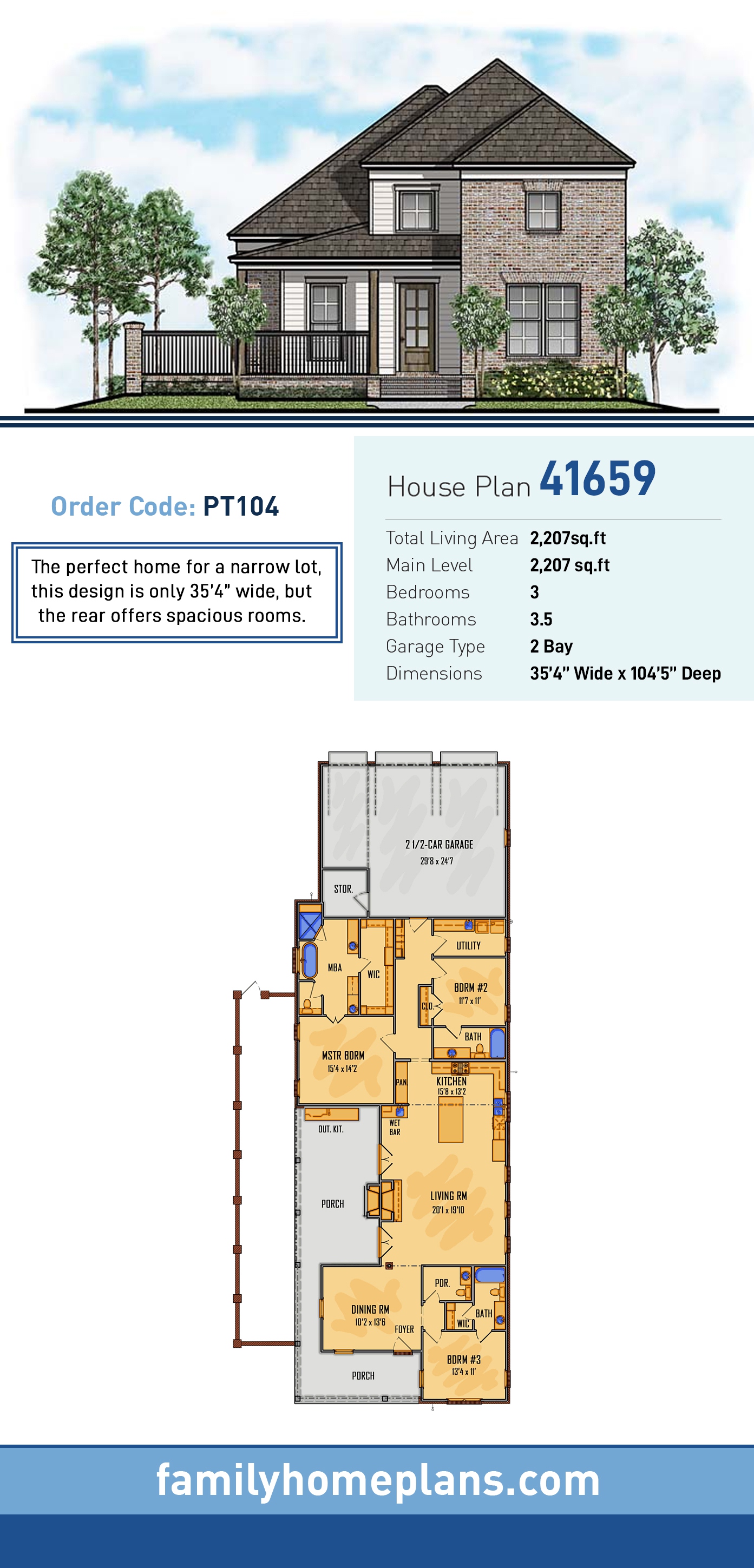 Country, Farmhouse Style House Plan 41659 with 2207 Sq Ft, 3 Bed, 4 Bath, 2 Car Garage