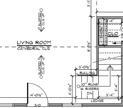 A:Attached is an image depicting the basement stair location on the first floor. Currently the basement is entirely open, so there aren't any rooms detailed.