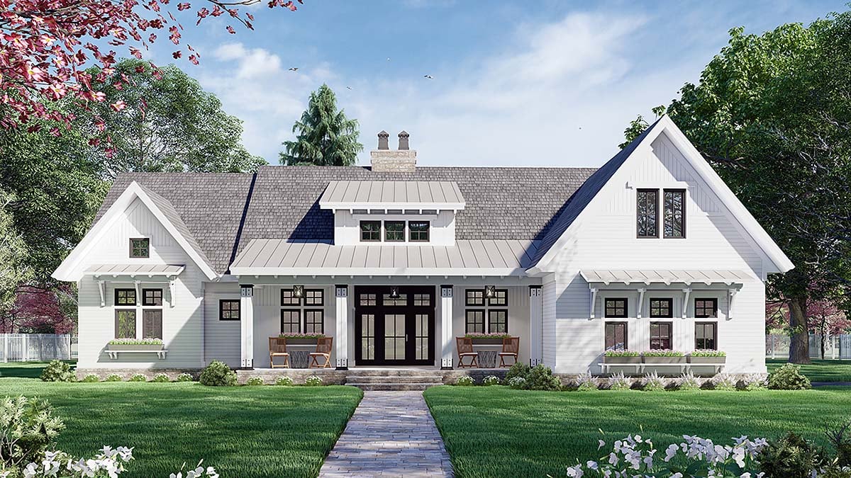 Modern Farmhouse Home Plan with 2419 Sq Ft, 3 Beds, 3 Baths and a 2 Car Garage