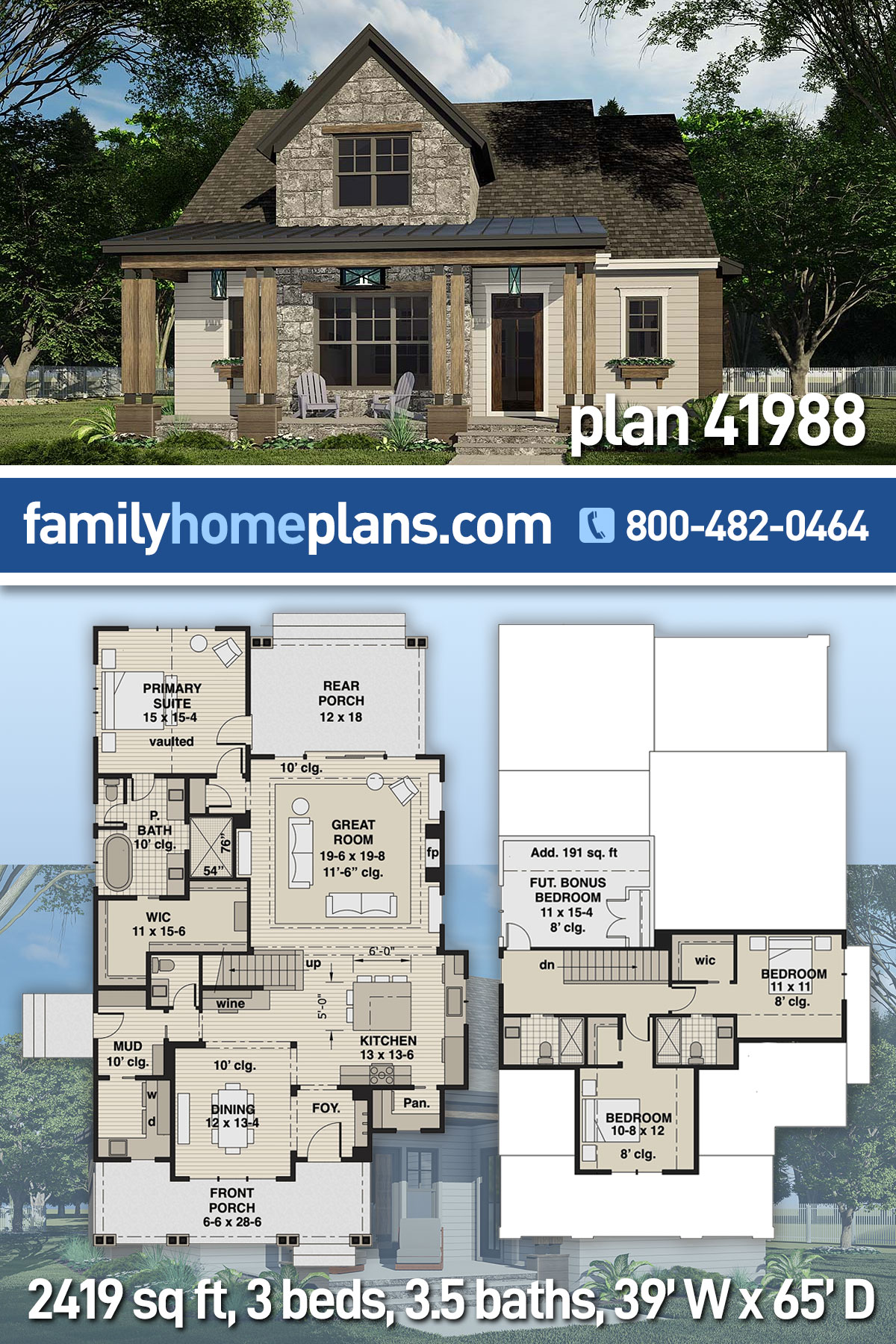 Plan 41988 | Cottage, Craftsman, Traditional House with 3 Bed, 4 Bath