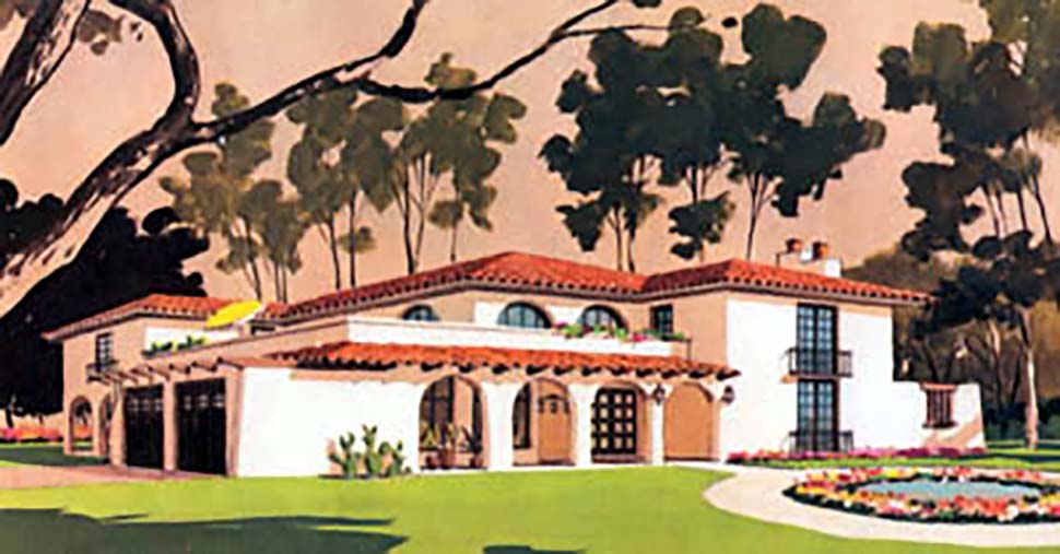 Mediterranean, Prairie Style House Plan 43008 with 2383 Sq Ft, 4 Bed, 3 Bath, 2 Car Garage