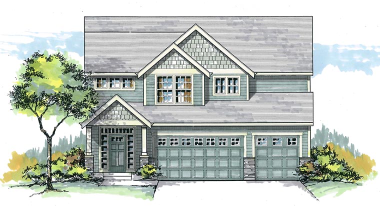 Colonial, Craftsman, Traditional Style House Plan 44633 with 2517 Sq Ft, 4 Bed, 3 Bath, 3 Car Garage